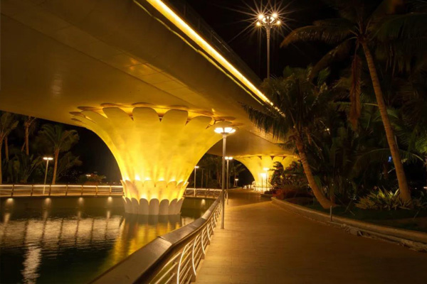 橋梁一般由欄桿,橋體,橋墩構成,從古代的石拱橋,到現代的鋼結構橋、吊橋、斜拉橋、懸索橋等多種多樣,因為在燈光設計上根據橋梁的結構和周邊環境,采用個性化的設計手法,突出橋梁的美感并與環境協調一致。